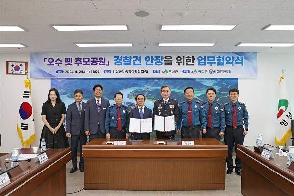 [임실=뉴전북] 전북 임실군(군수 심민)과 경찰인재개발원(원장 박성주)이 오수 펫 추모공원 내 경찰견 안장 업무를 공동으로 협력 추진하기 위해 지난 24일 업무협약을 체결했다.
