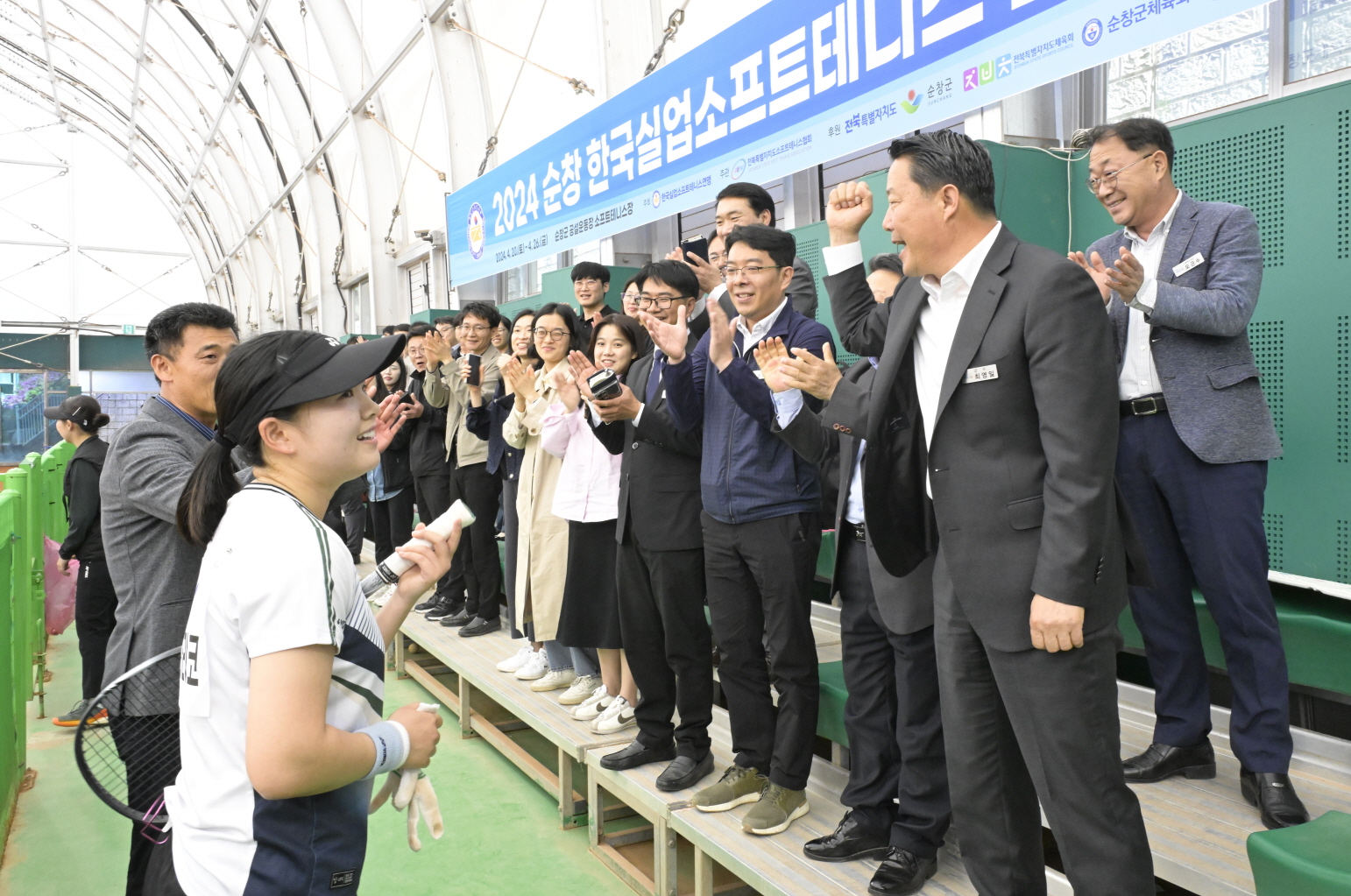 [순창=뉴전북] 전북 순창군청 남녀 소프트테니스팀이 소프트테니스 전국대회에서 메달을 휩쓸면서 소프트테니스의 명가임을 다시 한번 입증했다.순창군 공설운동장에서 이달 20일부터 26일까지 열린 ‘2024 순창 한국 실업 소프트테니스 춘계 연맹전’에서 실업 소프트테니스의 최강자 타이틀을 두고 전국 각지의 선수들이 쟁탈전을 벌였다.이번 대회에서 지난 22일 순창군청 남자 소프트테니스팀은 인천시체육회 소프트테니스팀을 상대로 한 단체전 결승전에서, 전년도 국가대표 출신인 윤형욱·김병국 선수가 한 조를 이루어 첫 번째 복식경기에 승리했으나 이어지는 단식과 복식경기에서 아깝게 패하며 준우승을 차지했다.또한 25일 열린 남녀 혼합복식 결승전에서는 순창군청 남자팀의 김병국 선수가 안성시청팀의 김연화선수가 조를 이루어 수원시청 채명일·충남개발공사 서현조 선수를 맞아 통쾌하게 세트스코어 5대 1로 제압했다.여자 소프트테니스 단식 결승전에서는 최영일 순창군수와 100여 명의 순창군 직원들이 찾아와 소속팀 선수들을 응원하며 힘을 실어줬으나 순창군청 특급용병 하야시다 리코 선수가 옥천군청의 이수진 선수를 만나 타이브레이크까지 가는 접전 끝에 6대 8로 아쉽게 패했다.최영일 순창군수는 “실업팀 운영은 체육선수 육성뿐만 아니라 스포츠마케팅과의 연계를 통한 지역경제 활성화를 도모하기 위한 중요한 사업이라고 생각하고 있다”며 “앞으로도 지속적인 실업팀 지원으로 지역선수도 육성하고, 지역 내 소상공인들에게 실질적인 도움을 줄 수 있도록 추진할 예정이다”라고 밝혔다.