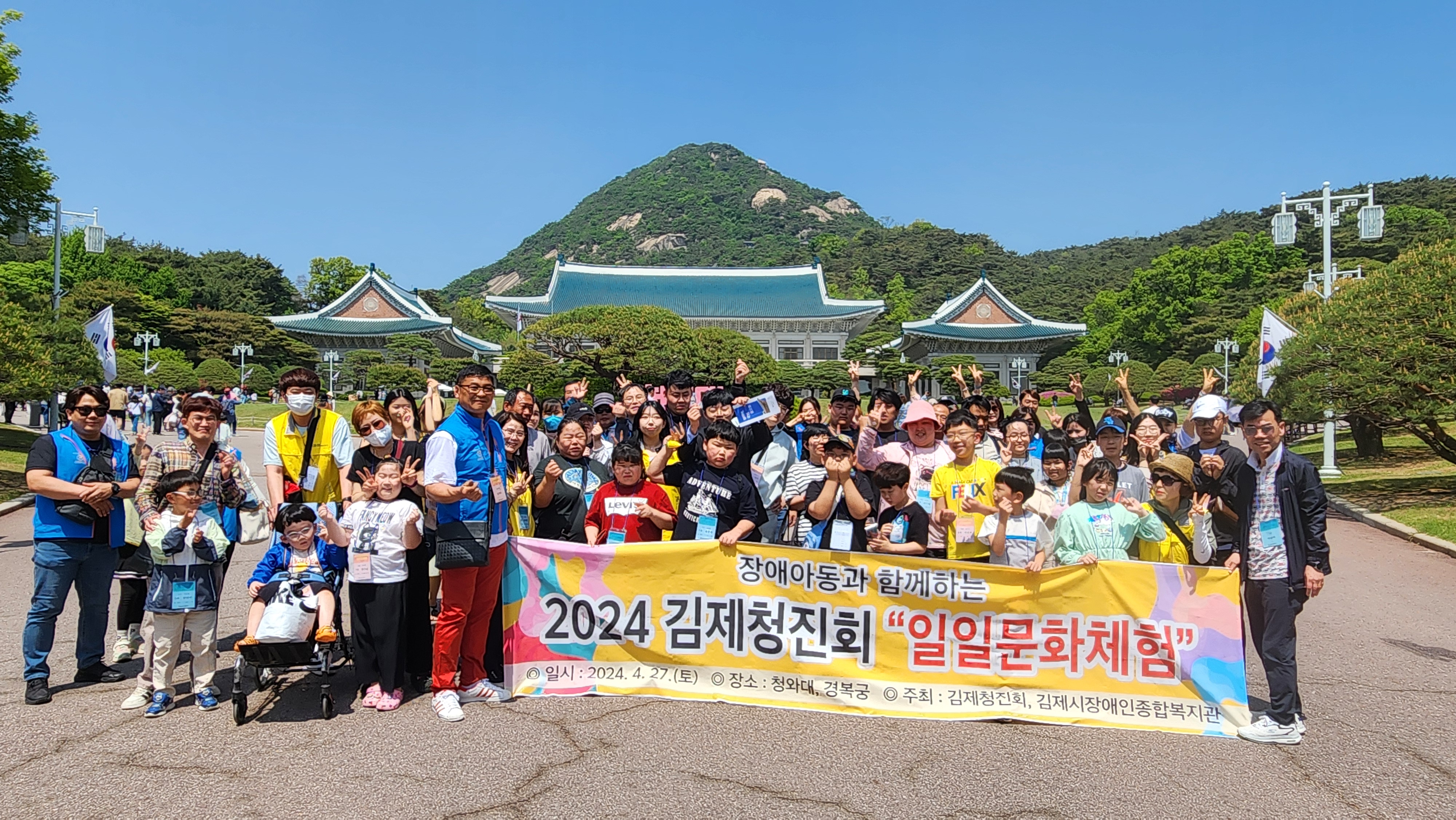 [김제=뉴전북] 김제시(시장 정성주)는 김제청진회(회장 임재훈)와 김제시장애인종합복지관(관장 박승택)이 지난 27일 장애인의 날 주간을 맞아 장애아동 및 보호자와 청진회원 등 70명이 일일 문화체험으로 서울 경복궁과 청와대를 관람했다고 밝혔다.