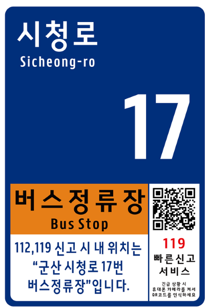 또한 군산시는 등산로, 산악지역 등 재난위험 지역에 설치한 ‘국가지점번호판’에도 2021년 행안부 지침에 따라 119연계형 QR코드를 부착하여 조난자들의 위치가 정확하게 신고 및 구조될 수 있도록 시민 안전시설 확충에 노력하고 있다.