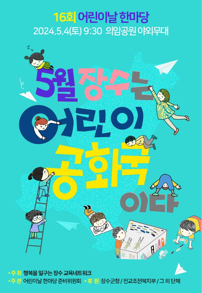 [장수=뉴전북]장수군에서는 ‘제16회 어린이날 한마당 행사’가 오는 4일 제102회 어린이날을 맞아 의암공원 야외무대 일원에서 개최된다.
