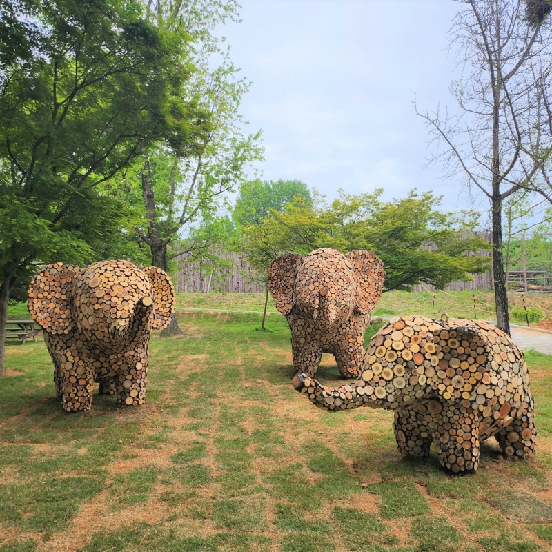 - 젊은 조각가들의 손으로 폐목재로 만든 새로운 코끼리 가족 조형물, 포토존으로 제공