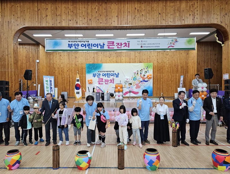 군이 주최하고 원불교 삼동청소년회 부안지회와 전북특별자치도 부안교육지원청 공동 관으로 진행된 이번 행사는 5대 마당(공연, 놀이, 체험, 먹거리, 나눔마당)을 열어 800여명의 어린이들이 부모님과 함께 참여할 수 있는 프로그램을 진행했다.
