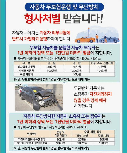 시는 무보험 차량의 운행만으로 형사처벌이 된다는 사실을 모르는 시민이 많아 적극적인 홍보와 운행 근절을 위해 번호판 영치 및 수사 활동을 병행하고 있다.