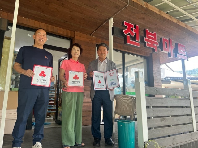 [김제=뉴전북] 김제시 금산면 행정복지센터는 9일 지역사회보장협의체(민간위원장 장영종)가 금산면 전북마트, 사철왕림가든, 아!옛날에 착한가게, 연이랑 농장에 착한농장 현판을 전달했다고 밝혔다.