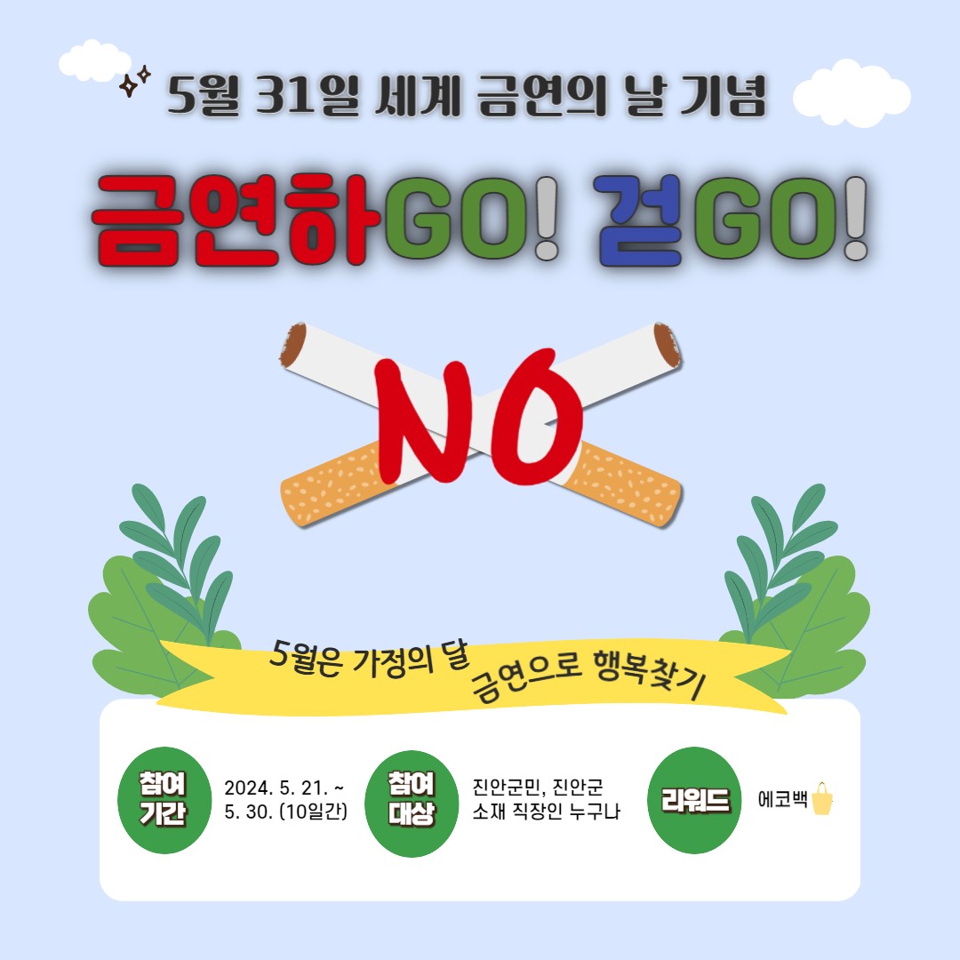 [진안=뉴전북]진안군은 제37회 ‘세계 금연의 날’을 맞아 군민 건강증진 및 건강생활실천 분위기 조성을 위해 워크온 앱을 활용한 건강걷기 챌린지를 운영한다.