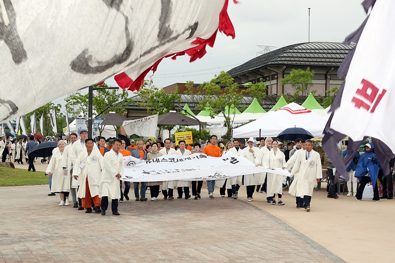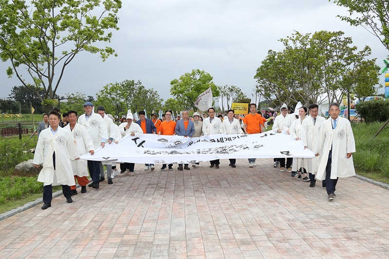 이 퍼포먼스에는 이학수 시장과 함께 ‘제3회 세계혁명도시 연대회의’에 참석한 세계 각국의 단체장이 함께하며 동학농민혁명의 세계화를 실현시켰다.