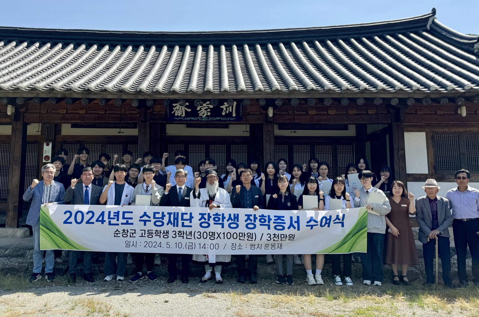 [순창=뉴전북] 삼양그룹 장학재단인 수당재단(이사장 김윤, 삼양그룹 회장)이 최근 쌍치면 훈몽재에서 순창군 관내 고등학생 30명에게 1인당 100만 원씩 3천만 원의 장학증서 수여식을 개최했다.