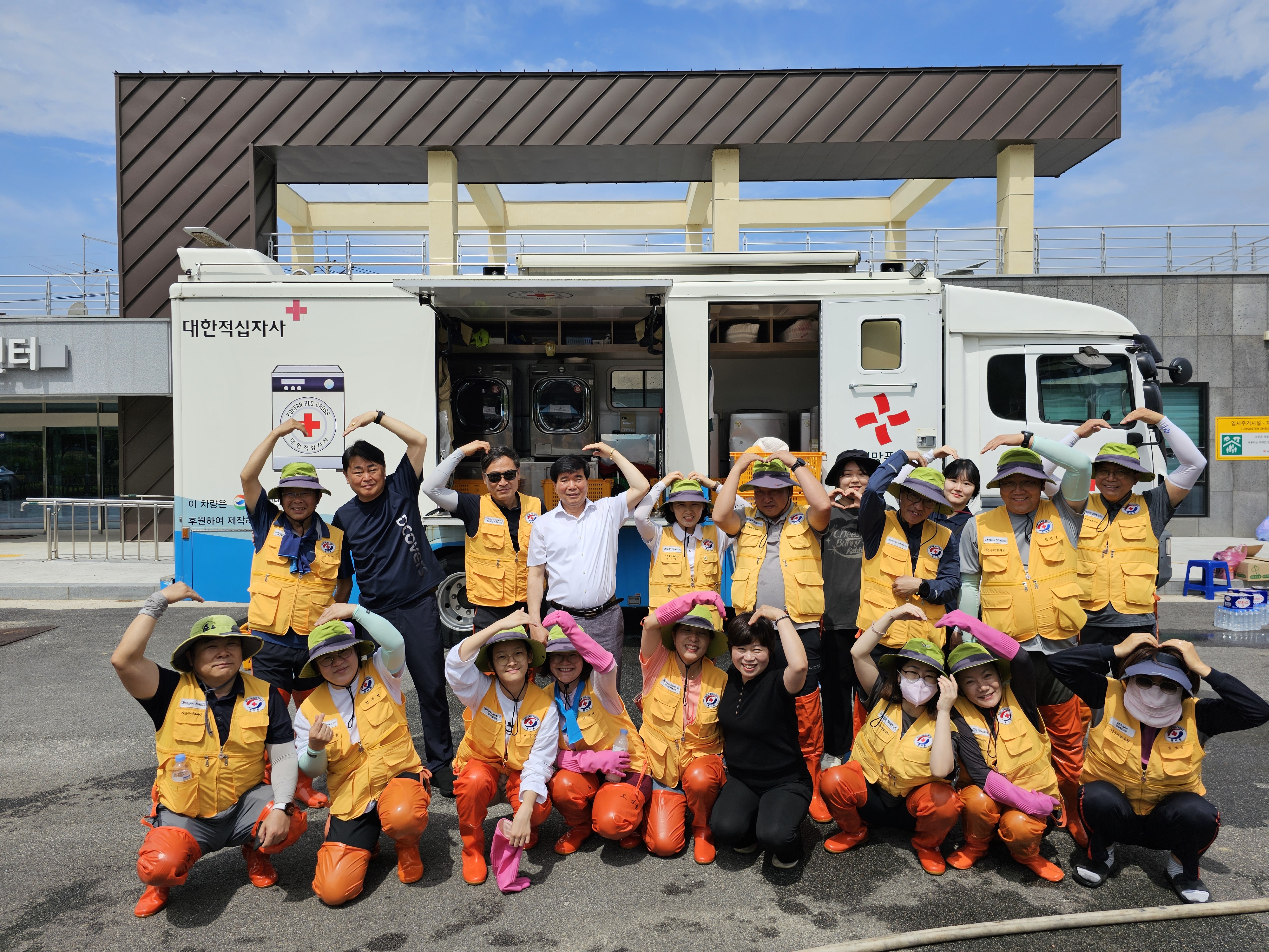 이날 이불빨래 탈수차량 지원은 대한적십자 전북지사에서 협조하였으며, 급수지원은 상수도사업소와 소방서의 협조를 받아 진행하였다.