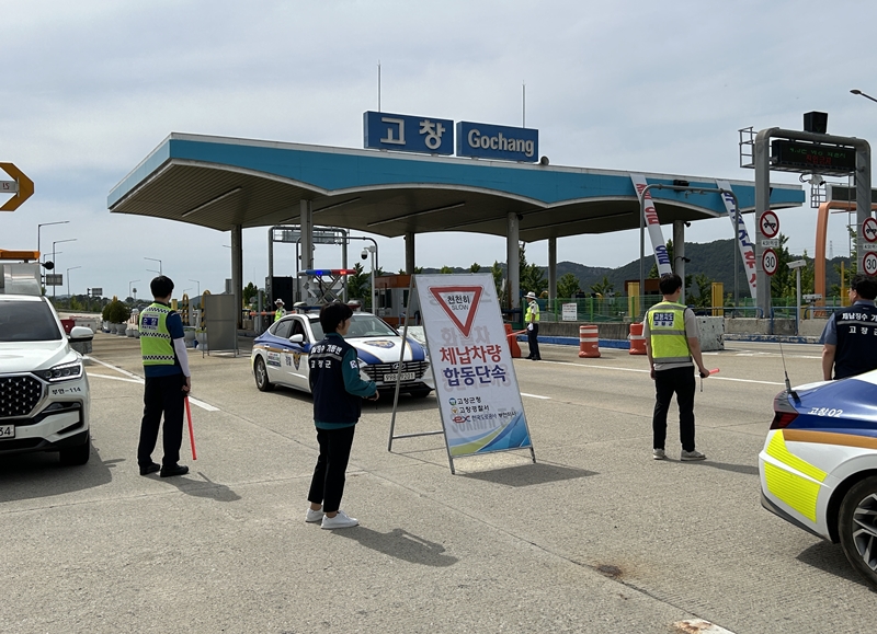 [고창=뉴전북] 고창군이 지난 28일 고창IC에서 합동단속반(군청·경찰서·한국도로공사)을 편성해 지방세와 세외수입 과태료 체납차량의 번호판 영치와 불법명의 차량단속을 병행해 실시했다.