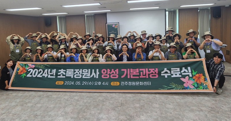 [전주=뉴전북] 전주시는 지난 29일과 31일 초록정원사 양성교육 관련 2개 과정 수료식을 열고 총 66명(기본 39명, 역량강화 27명)에게 수료증을 전달했다.