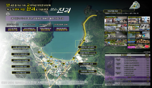 주요 사업내용은 수산물 공동작업장 정비, 진리 해양경관 정원 조성, 어촌회관 및 여자경로당 리모델링 등으로 주민 편익 증진과 정주여건을 개선하고, 문화복지, 공동체 프로그램 운영, 클린마을 조성, 경제 활성화 컨설팅 등을 통해서 지역 역량강화 등에도 힘쓸 예정이다.