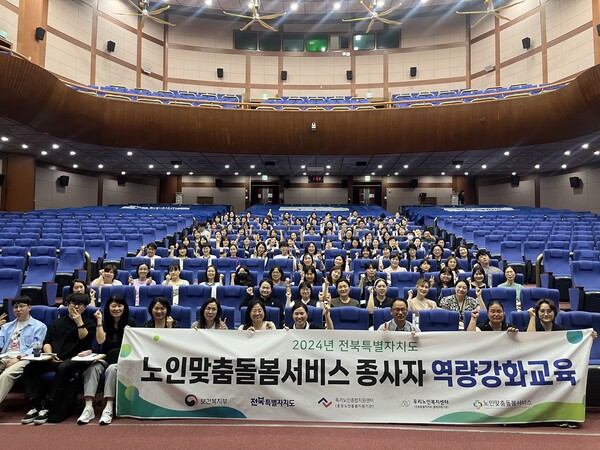 전북특별자치도는 14일 도청 대공연장에서 노인맞춤돌봄서비스 전담사회복지사 150명이 참석한 가운데 전북도 노인맞춤돌봄광역지원기관(우리노인복지센터) 주관으로 종사자 역량강화교육을 실시했다고 밝혔다.