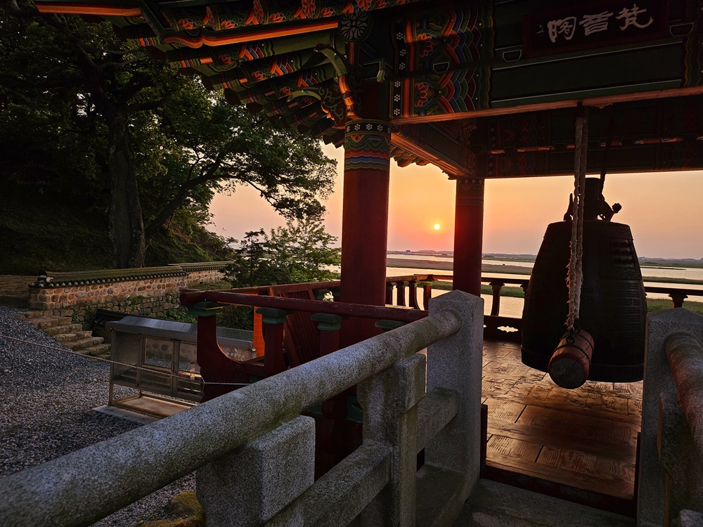 망해사는 이름 그대로 ‘바다를 바라보는 절’이라는 뜻으로 642년 백제 의자왕 때 부설거사가 세운 것을 당나라 승려 중도법사가 중창했으며, 조선 선조 때의 이름난 선승 진묵대사가 이곳에서 수행하며 낙서전과 팽나무를 심었던 유서 깊은 사찰이다.