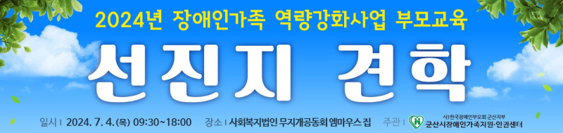 [군산=뉴전북] 군산시 장애인가족지원인권센터가 6월 28일까지 2024년 장애인가족 역량강화사업 참여자를 모집한다고 밝혔다. 이번 사업은 7월 4일 실시하는 역량강화 부모교육 중 선진지 견학 프로그램으로 우리나라 최초의 자립형 주거시설인 광주 엠마우스집에 방문할 계획이다.