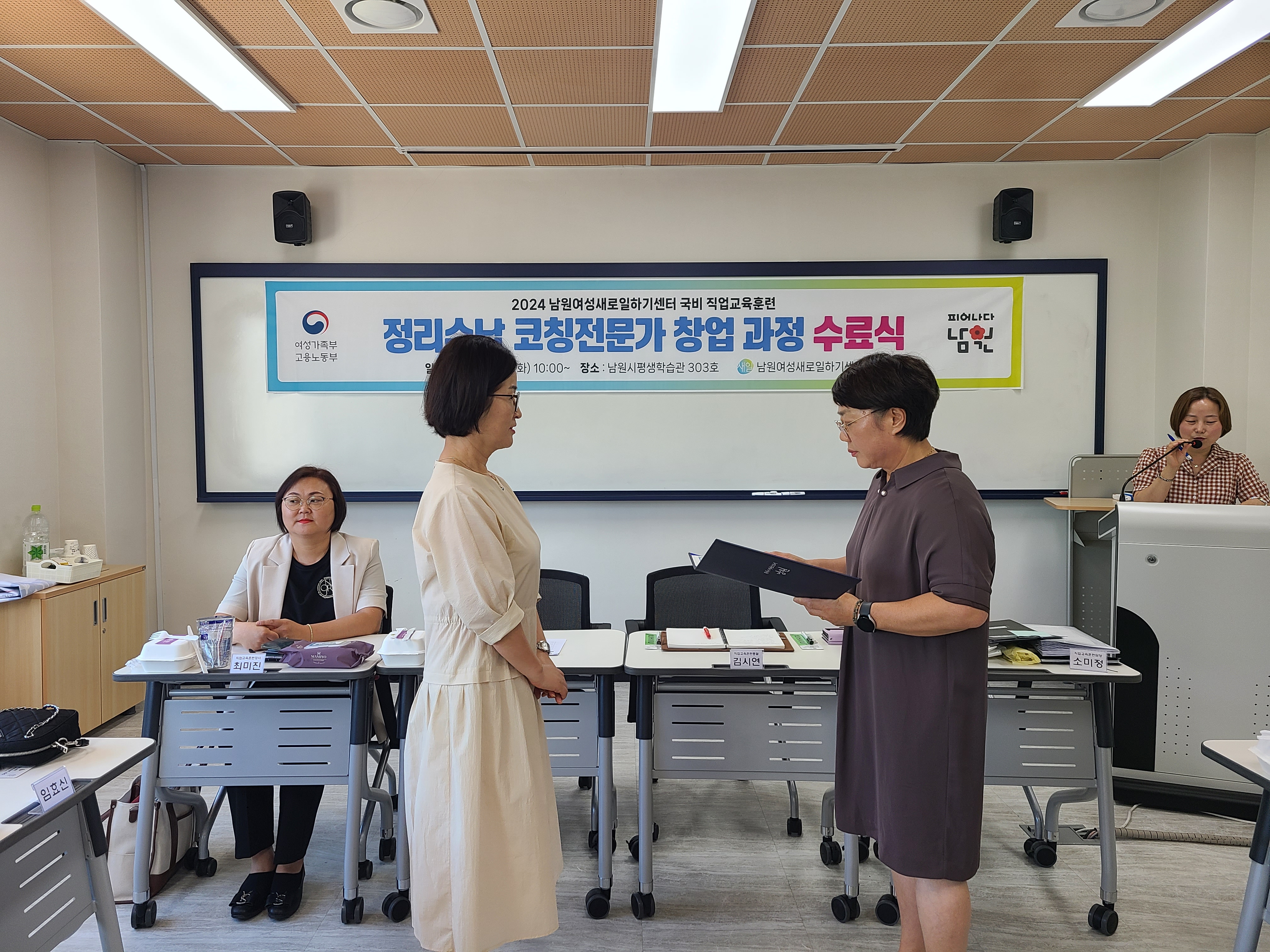 남원여성새로일하기센터장(센터장 지양근)은 “직업교육훈련으로 그치는 것이 아닌 지속적인 사후관리로 수료생들이 지역사회에서 경제활동을 할 수 있도록 최선을 다해 지원하겠다”며 “체계적인 정리수납 전문지식과 기술을 습득한 수료생들이 정리수납 코칭전문가로 활동할 수 있도록 지역사회의 많은 관심을 바란다”고 밝혔다.