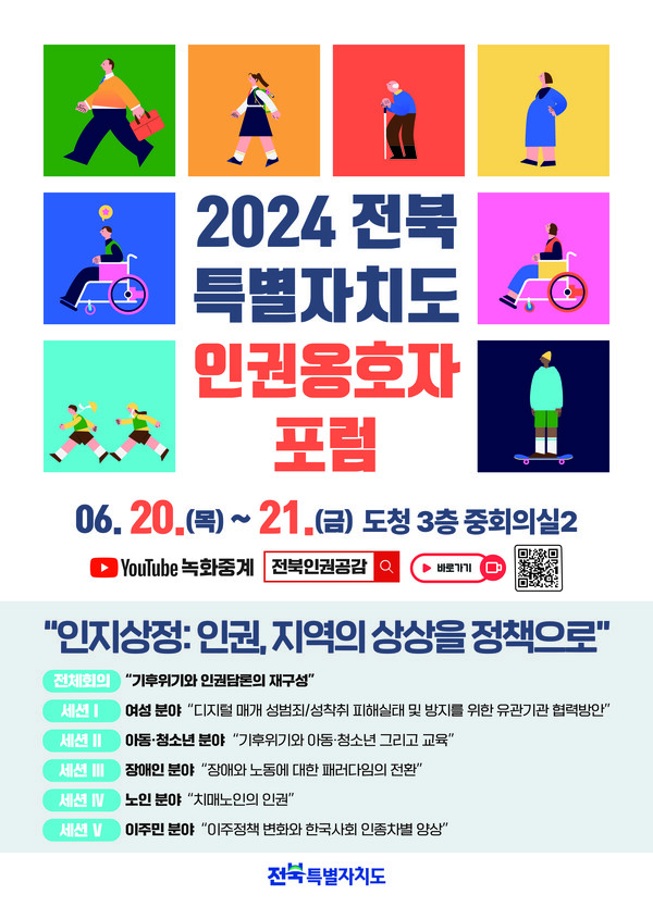 [사회=뉴전북] 전북특별자치도가 20일부터 2일간 도청 중회의실에서 『2024 전북특별자치도 인권옹호자 포럼』을 개최한다고 밝혔다.