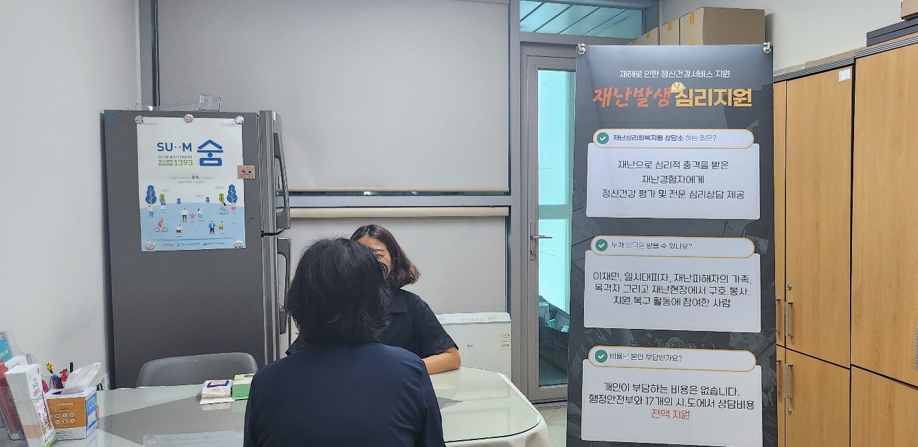 또한, 6월 17일부터 정신건강복지센터내에 재난심리회복지원 상담소를 설치하여 재난 경험자의 불안, 불면, 외상후 스트레스 등 정신건강 평가를 포함한 정신건강 전문인력의 1차 상담, 정신건강복지센터장(정신건강의학과 전문의)의 2차 상담 등 개인별 심리상태를 고려하여 맞춤형 심층 상담을 무료로 실시하고 있다.