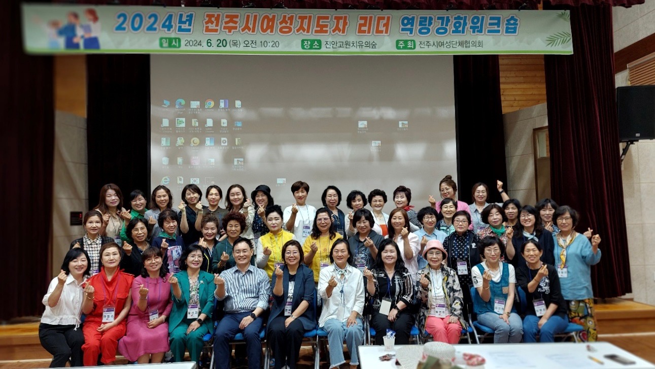 [전주=뉴전북] 전주시 여성단체협의회(회장 온은아)는 20일 진안고원 치유숲에서 소속 임원 등 45명이 참여한 가운데 ‘2024년 전주시 여성지도자 역량강화 워크숍’을 개최했다.