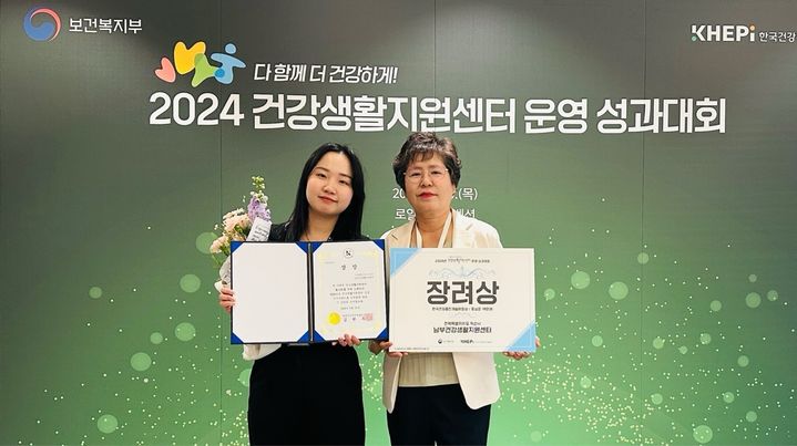 남부건강생활지원센터는 20일 보건복지부와 한국건강증진개발원의 공동 주최로 열린 '2024년도 건강생활지원센터사업 성과대회'에서 우수기관에 선정돼 한국건강증진개발원장상(장려상)과 함께 상금 100만 원을 받았다.