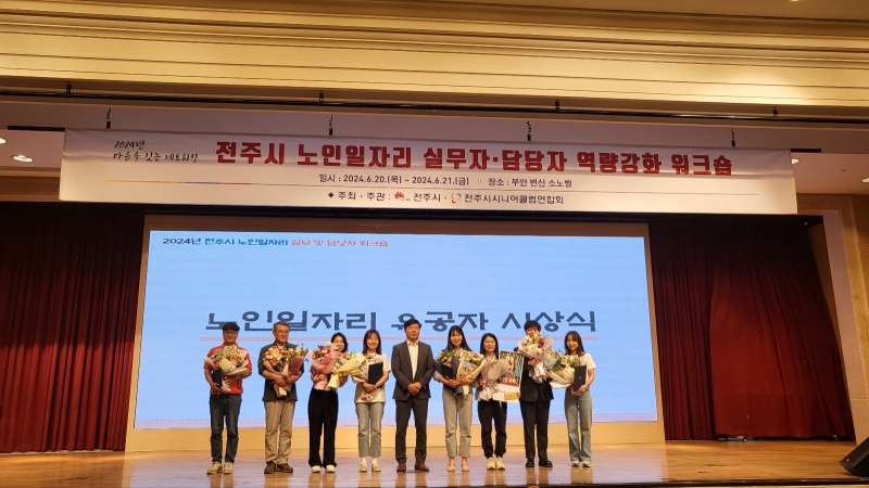 행사는 ▲김효춘 전주시니어클럽연합회장의 개회사 ▲김용삼 전주시 복지환경국장의 축사 ▲노인일자리 유공자에 대한 시장 표창(8명) 수여 ▲2025년 노인일자리사업 추진 방향에 대한 한국노인인력개발원 전북지사의 특강 ▲직장 내 괴롭힘 방지 특강 ▲레크리에이션 등의 순으로 진행됐다.