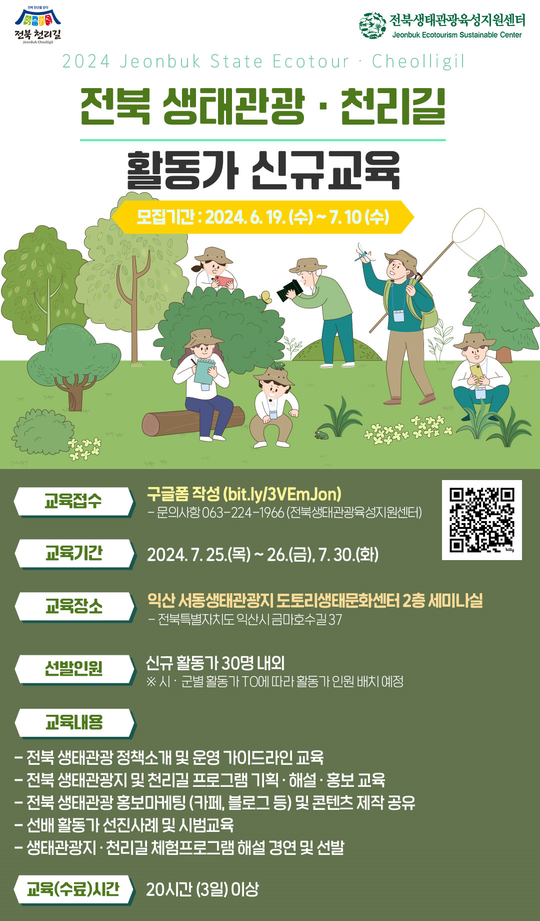 [도정=뉴전북] 전북특별자치도는 도내 생태관광지·전북천리길 홍보와 탐방객을 안내할 생태관광 활동가 신규교육 신청을 7월 10일까지 받는다고 밝혔다.