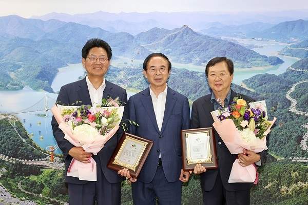 심 민 군수는 지난 21일 6월 30일 자로 공직 생활을 마감하는 이남재 행정문화국장과 김종민 복지환경국장의 영예로운 퇴임을 축하하며, 그동안의 공로에 감사한 마음을 담아 공로패를 전달했다.