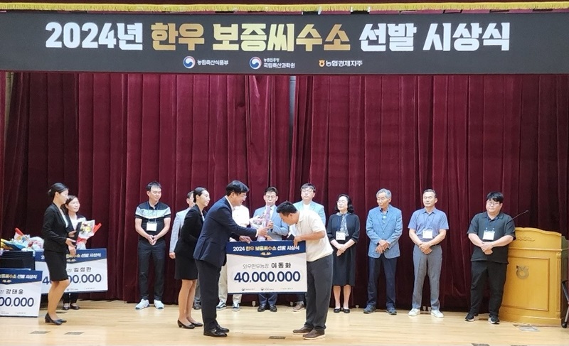 농협경제지주 축산경제는 지난 1일 경기 농협 안성교육원 대강당에서‘2024년 상반기 한우 보증씨수소 선발 시상식’을 개최했다.