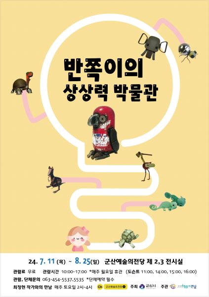 [군산=뉴전북] 군산예술의전당이 여름방학을 맞이해 아이들의 상상력과 창의력을 불러일으키는 체험전시 반쪽이의 상상력 박물관展 을 7월 11일에서 8월 25일(매주 월 휴무)까지 46일 동안 군산예술의전당 2·3 전시실에서 개최한다.