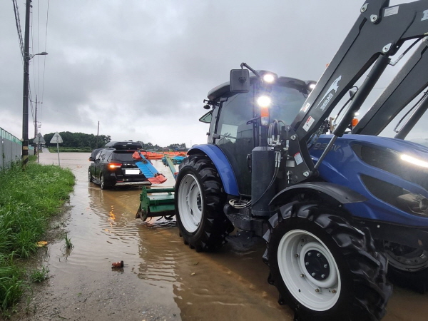 오 통장은 주저 없이 고립된 차에 다가가 단단히 끈을 묶었고, 자신의 트랙터를 이용해 구조작업을 진행했다.