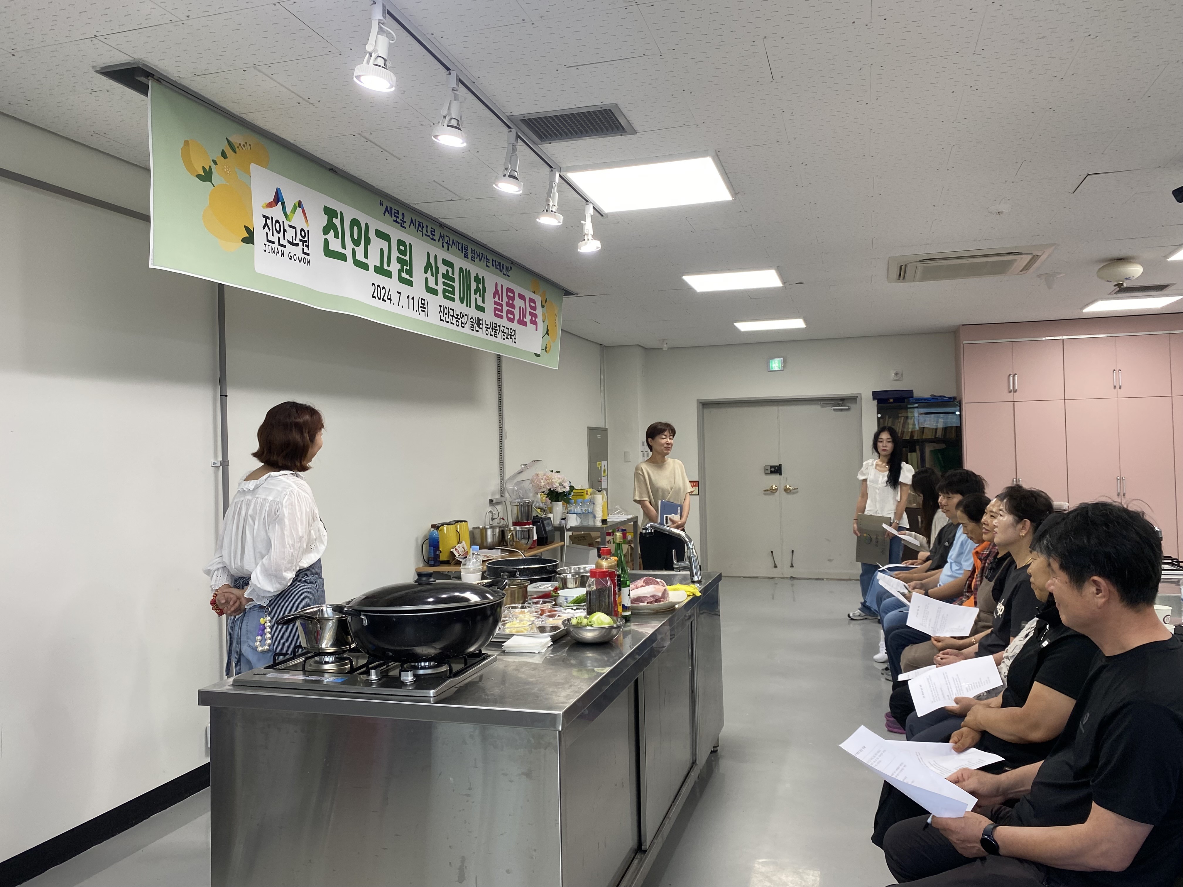 [진안=뉴전북]진안군은 11일 군 농업기술센터 농산물가공교육장에서 『진안고원 산골애찬』음식점 15개소를 대상으로 지역의 외식산업 경쟁력 강화를 위한 실용교육을 실시했다.