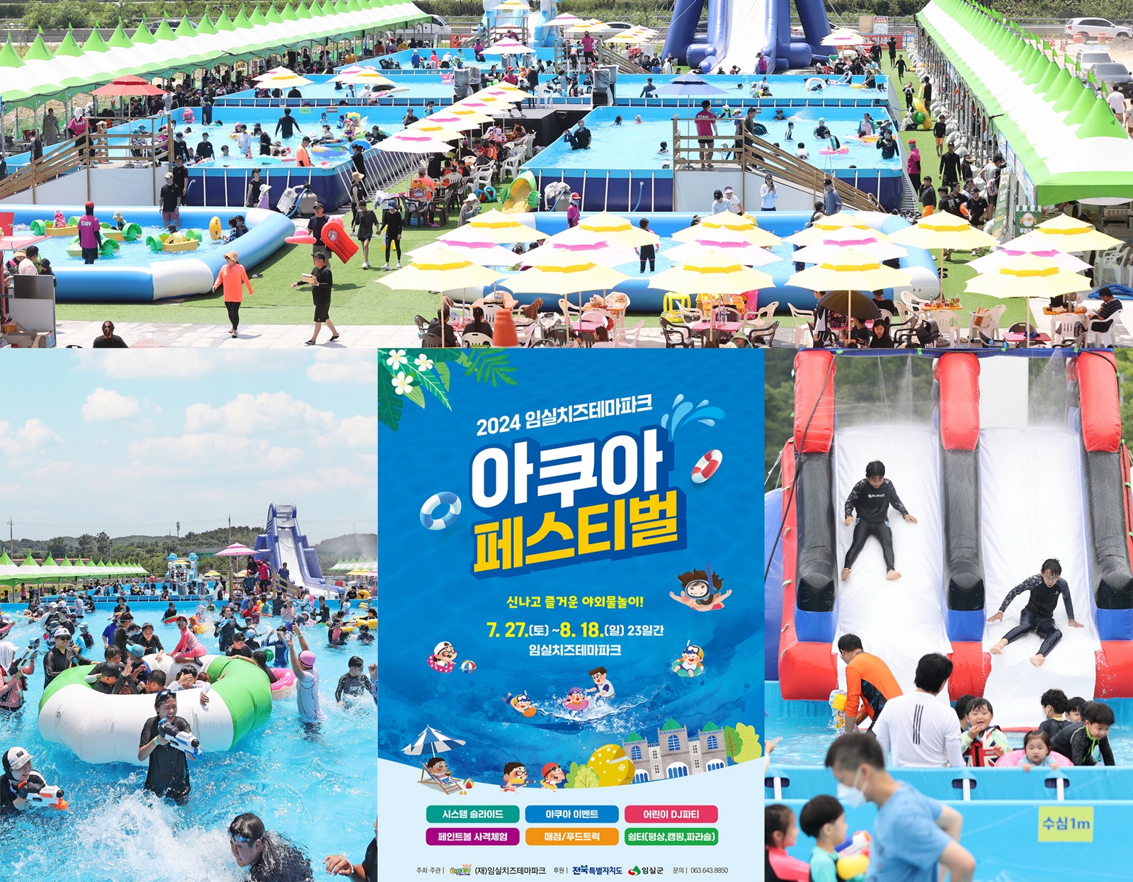 군은 본격적인 여름방학 시즌인 이달 27일부터 내달 18일까지 해마다 여름철 물놀이장으로 인기를 끌고 있는 임실아쿠아페스티벌을 임실치즈테마파크 이벤트 광장에서 연다.