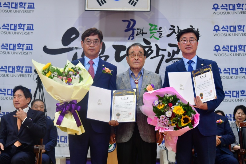[완주=뉴전북] 완주군의회 심부건 의원이 15일 우석대학교에서 진행된 ‘제22회 우석대학교 총장기 전국 태권도대회’에서 이동섭 국기원장으로부터 감사장을 받았다.