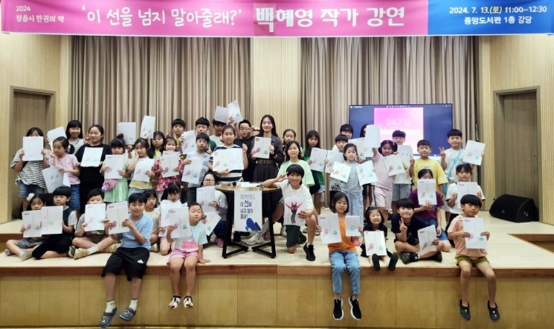 이날 강연에서 백 작가는 어린이 80여명을 대상으로, 그림책이 만들어지는 과정을 소개하고 어린이들의 질문에 답변하며 소통하는 시간을 가졌다.