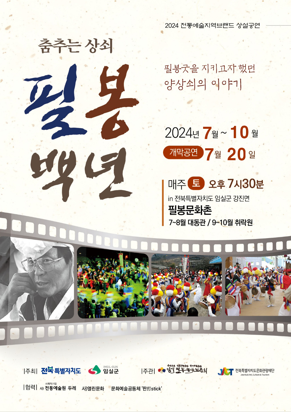 - 전북특자도‧임실군 지원, 전통예술지역 브랜드 상설공연 오는 20일 막 올려,13년 연속 선정, 필봉농악 전통연희극 춤추는 상쇠 시리즈 선사