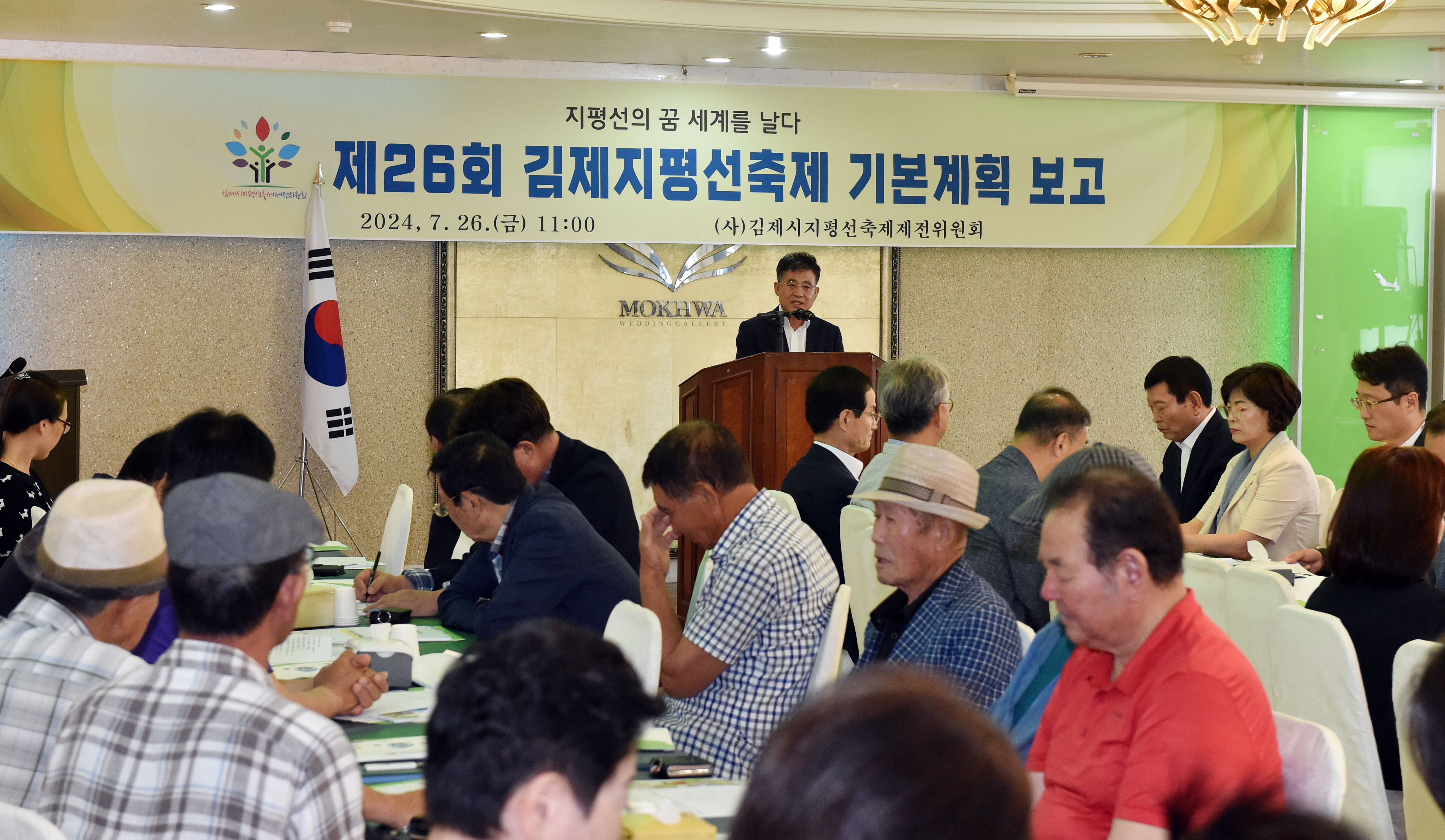 이날 정성주 김제시장과 이원택 국회의원, 서백현 시의회 의장을 비롯한 시의원 등 주요 내빈과 제전위원회 이사, 대의원, 자문 위원 등 170여 명이 참여해 본격적인 축제 시작을 알리는 제26회 김제지평선축제 기본계획 보고회를 가졌다.