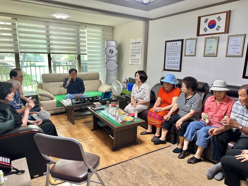 이번 방문은 경로당별 생활 환경을 직접 살펴보며 특히 무더위와 폭우 속에서 건강과 안부를 확인하고 경로당 이용에 불편함은 없는지 보살핌 차원에서 실시됐다.