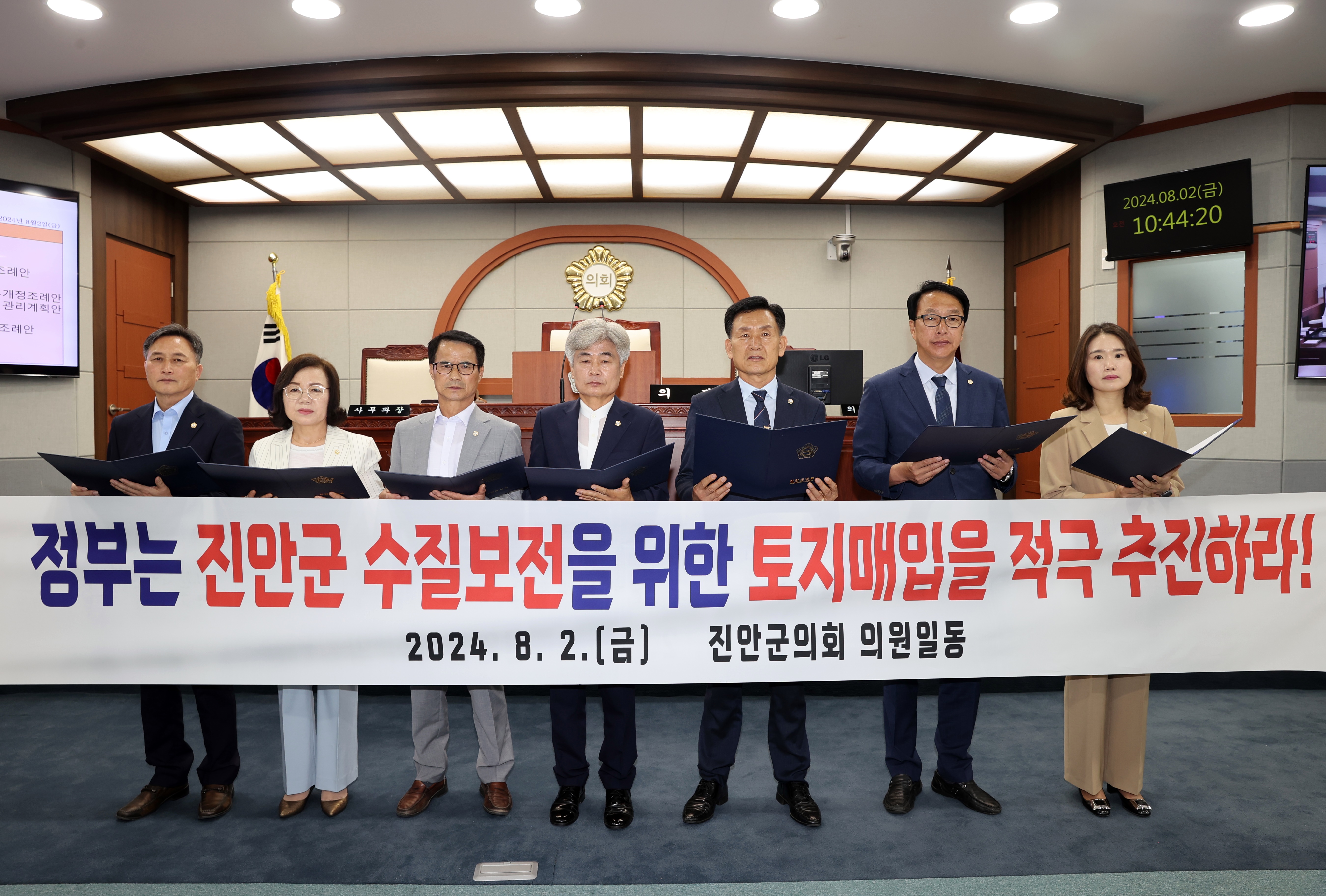 이에 진안군의회는 △ 헌법 제35조 건강하고 쾌적한 환경에서 생활할 권리를 보장하기 위한 정책 수립, △ 정부의 마령면 대형 축사 신속 매입, △ 섬진강수계, 금강수계 상류에 위치한 축사 단계적 매입 등 진안군 수질보전을 위해 정부에 건의했다.