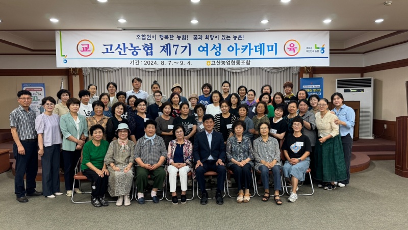 [완주=뉴전북] 고산농협(조합장 손병철)은 7일 고산농협 본점 2층 대회의실에서 임직원, 여성조직장과 교육생 60여 명이 참석한 가운데 ‘제7기 여성아카데미’ 개강식을 개최했다.