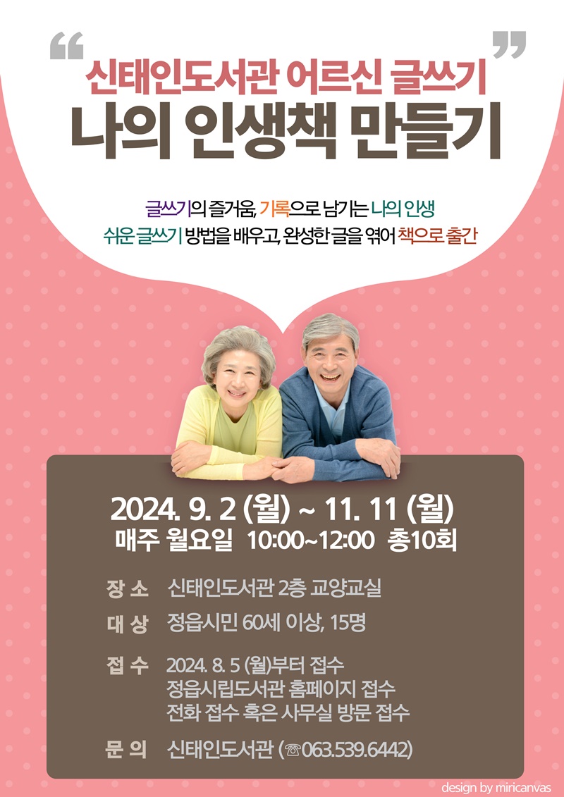 수업은 오혜원 동화작가 진행하며, 글쓰기가 막연하고 어렵다고 생각하는 어르신들이 머릿속 생각을 쉽게 글로 표현할 수 있도록 돕는다. 이를 통해 어르신들은 젊은 시절부터 황혼기에 이르기까지의 감정들을 글로 표현하여 책으로 편찬할 수 있다.
