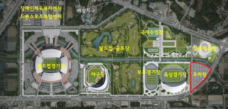 [전주=뉴전북] 복합스포츠타운으로 조성되는 전주월드컵경기장 일대에 방문객의 편의를 위해 사업비 157억 원을 투입해 대규모 공영주차장이 조성된다.
