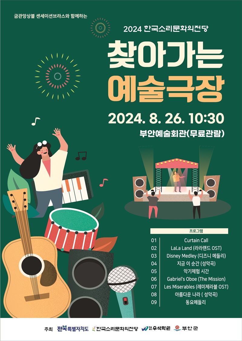 이번 공연은 전북특별자치도와 한국소리문화의전당, 부안군, 우석학원이 주최하며 생활 속의 문화예술을 즐기고 문화예술 발전을 도모하기 위해 다양한 연출 방법으로 클래식 공연을 준비했다.