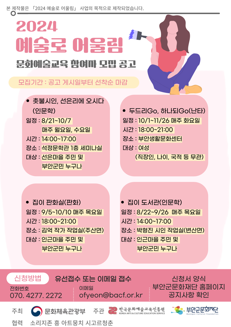 이 사업은 문화체육관광부와 한국문화예술위원회가 후원하는 작은미술관 조성 및 운영지원 사업의 일환으로, 전국 곳곳에 미술문화가 도달할 수 있는 기반 마련과 시각예술 향유를 목적으로 한다.