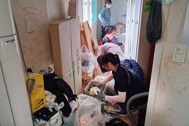 참여자들은 이날 집안에 쌓인 쓰레기 수거 등 청소를 비롯해 자원봉사센터에서 지원받은 이동 빨래방을 통해 옷과 이불 등을 세탁했다.