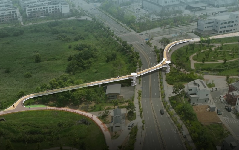 특히 시는 경관성을 고려해 보행육교를 설계했으며, 육교 위에서 기지제 등 주변 경관을 조망할 수 있는 전망 공간 조성도 계획했다. 또, 기지제 산책로와의 연계성 등을 고려해 포장 재질을 나무데크로 반영했다.