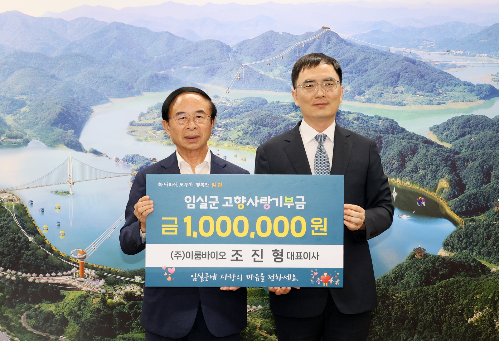 - ㈜이룸바이오 조진형 대표이사, 고향사랑기부금 1백만원 기탁