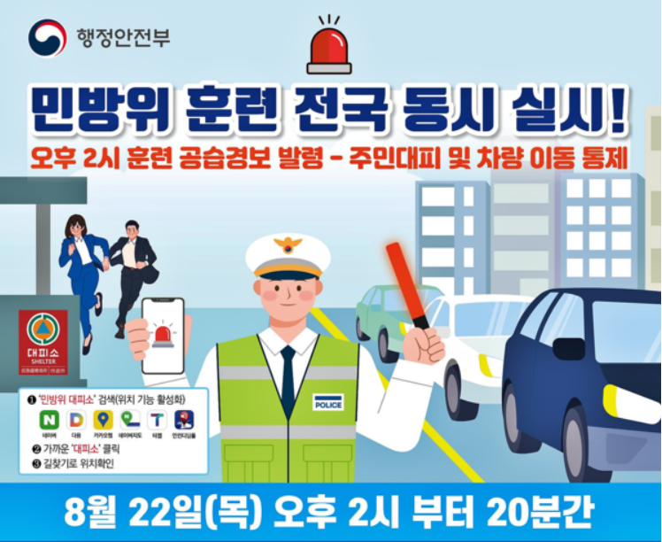 [도정=뉴전북] 전북특별자치도는 22일 오후 2시부터 20분간 전국에서 공습 대비 민방위훈련을 실시한다고 밝혔다.