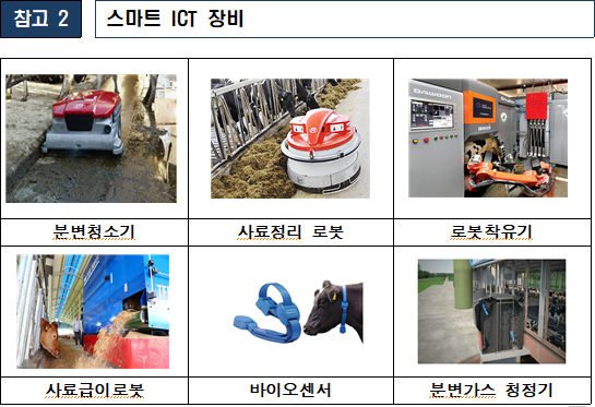 또한, 로봇착유기, 분변로봇청소기, 송아지 자동포유기, 사료자동급이기 등 다양한 스마트 ICT 장비를 구축해 전자동화 시스템의 미래목장 표준모델을 제시하겠다는 계획이다.