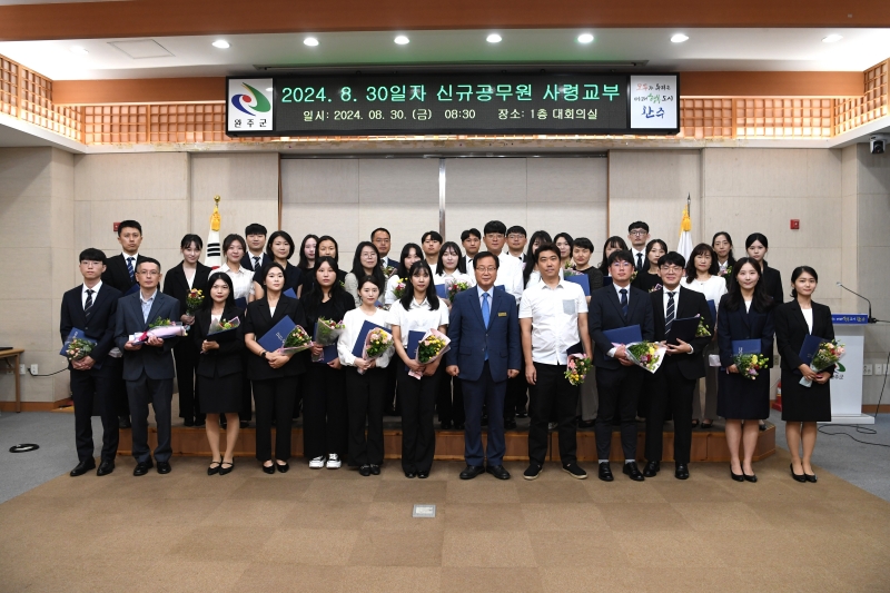 수여식에서 유희태 완주군수는 “공무원 임용을 축하하고 공직생활에 첫 발을 내딛은 것을 환영한다”며 “신규자의 패기와 열정이 완주군 발전과 주민의 삶의 질 향상에 큰 힘이 될 것으로 기대한다“고 말했다.