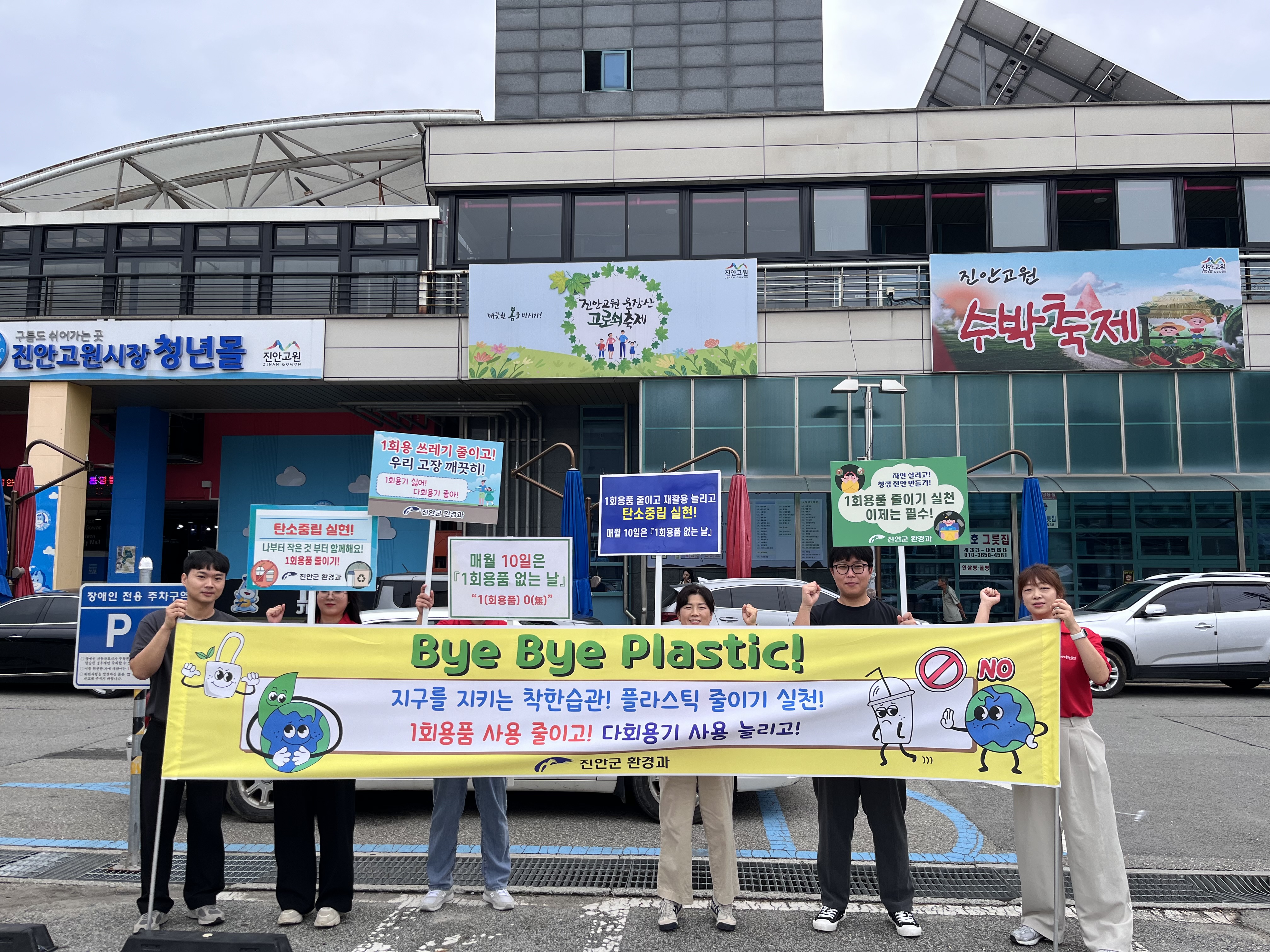 [진안=뉴전북]진안군은 9일 제16회 자원순환의 날을 맞이해 진안고원 시장에서 시장방문객 및 주민을 대상으로 ‘플라스틱오염, 이제 그만(Bye Bye Plastic)’을 주제로 캠페인을 전개했다.